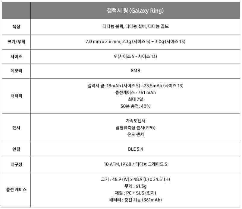 갤럭시 링 스펙