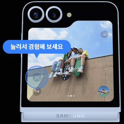갤럭시 Z 플립6는 신규 5,000만 화소 광각, 1,200만 화소 초광각 카메라를 탑재했습니다. 5,000만 화소 고해상도 센서는 광학 줌 수준의 2배 줌을 지원해 2배까지 화질 저하 없는 성능과 결과물을 제공하며, AI 줌 솔루션으로 최대 10배까지 확대해도 선명한 사진 촬영을 가능하게 해줍니다. 특히, 조명이 어두운 곳이나, 역광에서도 선명한 고해상도 셀카를 찍을 수 있을 정도로 완벽한 인물샷을 완성할 수 있습니다.