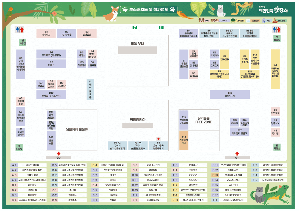 - 성숙한 반려동물 문화 장착을 위해 반려동물 배뇨는 전시장 내 펫 화장실이나 반드시 배변봉투를 이용해 주시기 바랍니다.