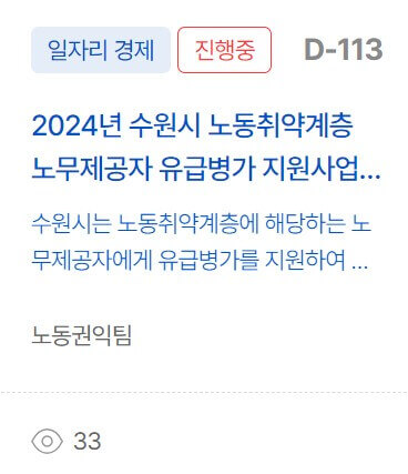 지금까지 2024 수원시 노동취약계층 노무제공자 유급병가 지원사업 신청방법, 신청기간, 지원내용, 신청대상, 신청자격, 지급방법 및 기한에 대하여 알아보았습니다.