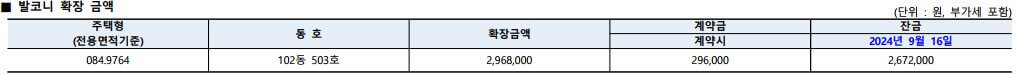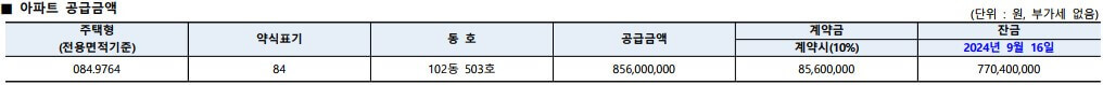 | 입주 예정시기 | 2024. 9.16.(잔금 입금 후) |