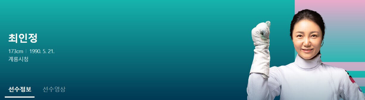 사진을 클릭하면 최인정 선수의 더 자세한 경력, 수상기록, 화보, 인터뷰 영상 등의 정보를 바로 확인하실 수 있습니다.