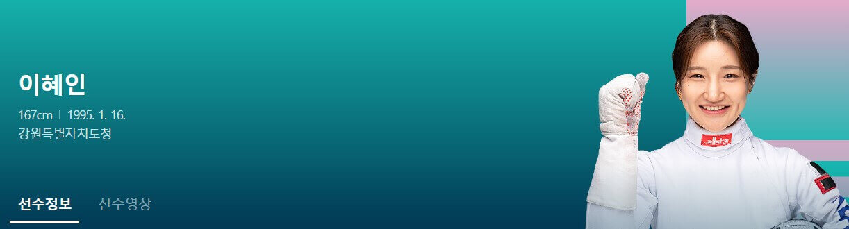사진을 클릭하면 이혜인 선수의 더 자세한 경력, 수상기록, 화보, 인터뷰 영상 등의 정보를 바로 확인하실 수 있습니다.