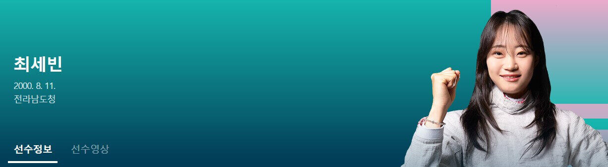 사진을 클릭하면 최세빈 선수의 더 자세한 경력, 수상기록, 화보, 인터뷰 영상 등의 정보를 바로 확인하실 수 있습니다.