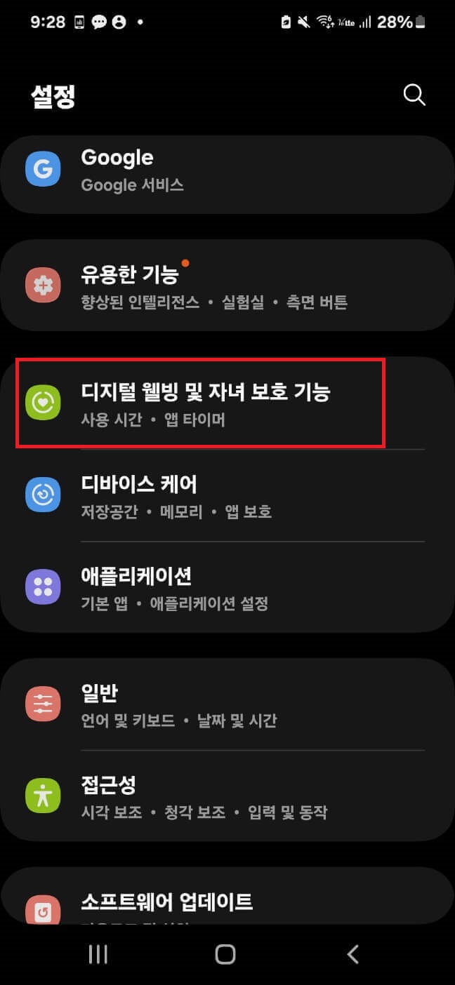 톱니바퀴를 눌러서 설정에 들어갑니다. 내리다. 보면 디지털 웰빙이라고 있는데요.